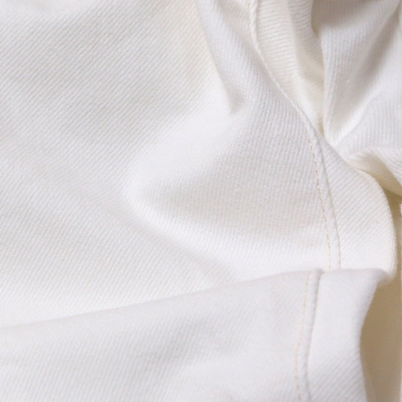 「CIRCLE」シリーズ #3 ストレートは、独自の「カーブベルト」構造が特徴的なデニムです。従来の直線ベルトから曲線設計へと進化させ、腰部の装着感を格段に向上。国内製造による確かな品質と、クラシック力織機で製織されたオフホワイトセルヴィッチデニムを採用しています。際立つ白色と乾いた質感、優れた肌触りと適度な張りが四季を通じて快適な着用感を提供。ベーシックなストレートシルエットながら、太腿から裾へと微妙にテーパードし、脚線をスマートに演出。バランスの取れた細身フォルムは国際的にも高い評価を得ており、窮屈さのない着心地と長期使用に耐える耐久性を兼ね備えた一着です。