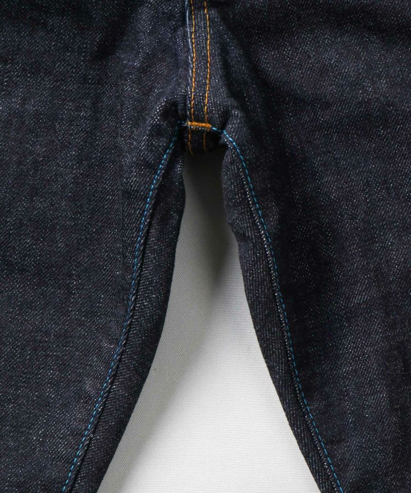 糸の打ち込みを極限まで入れることで、着用を繰り返しても硬さが持続しアタリもつきやすい「育てるためのデニム」。