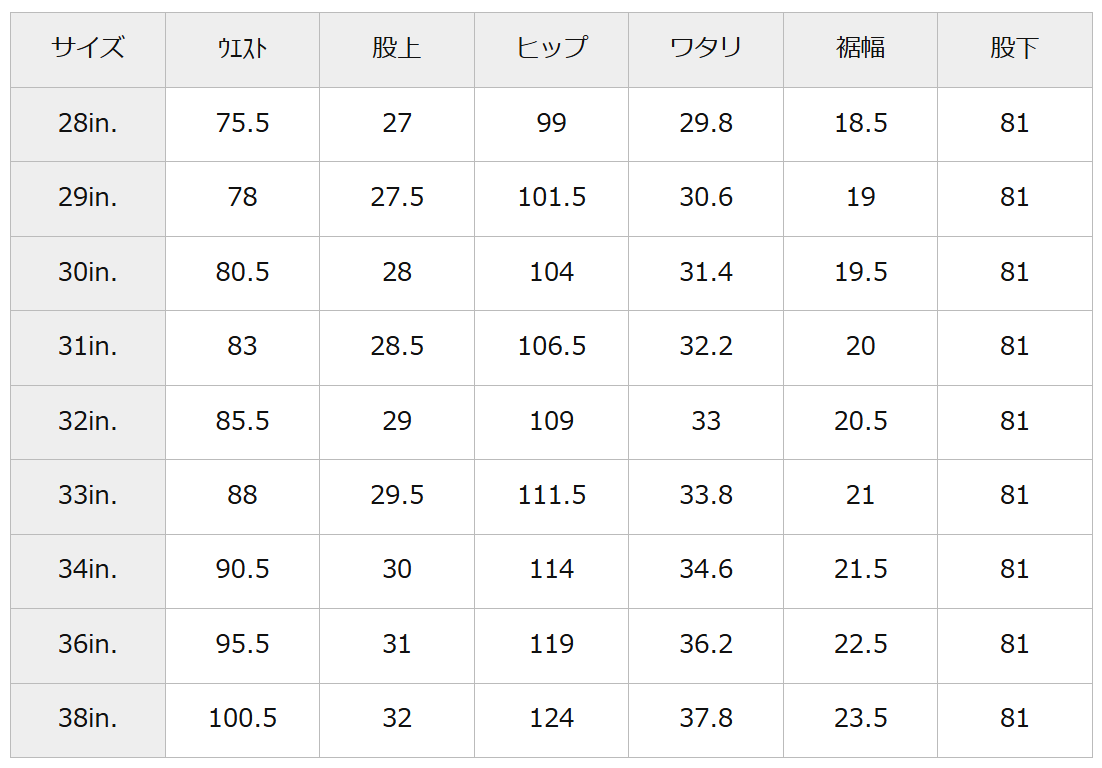 深めの股上とやや太めのシルエットのクラシックストレートモデル。
