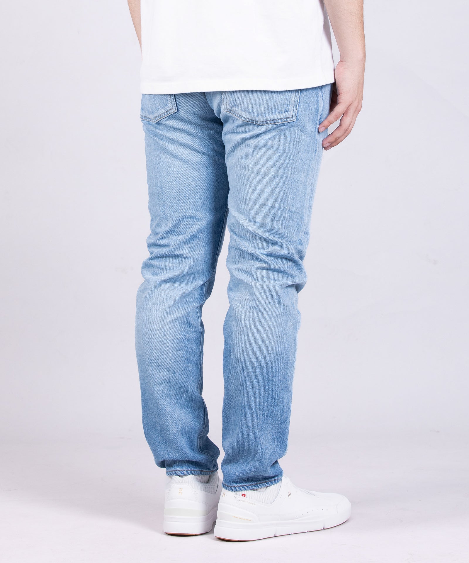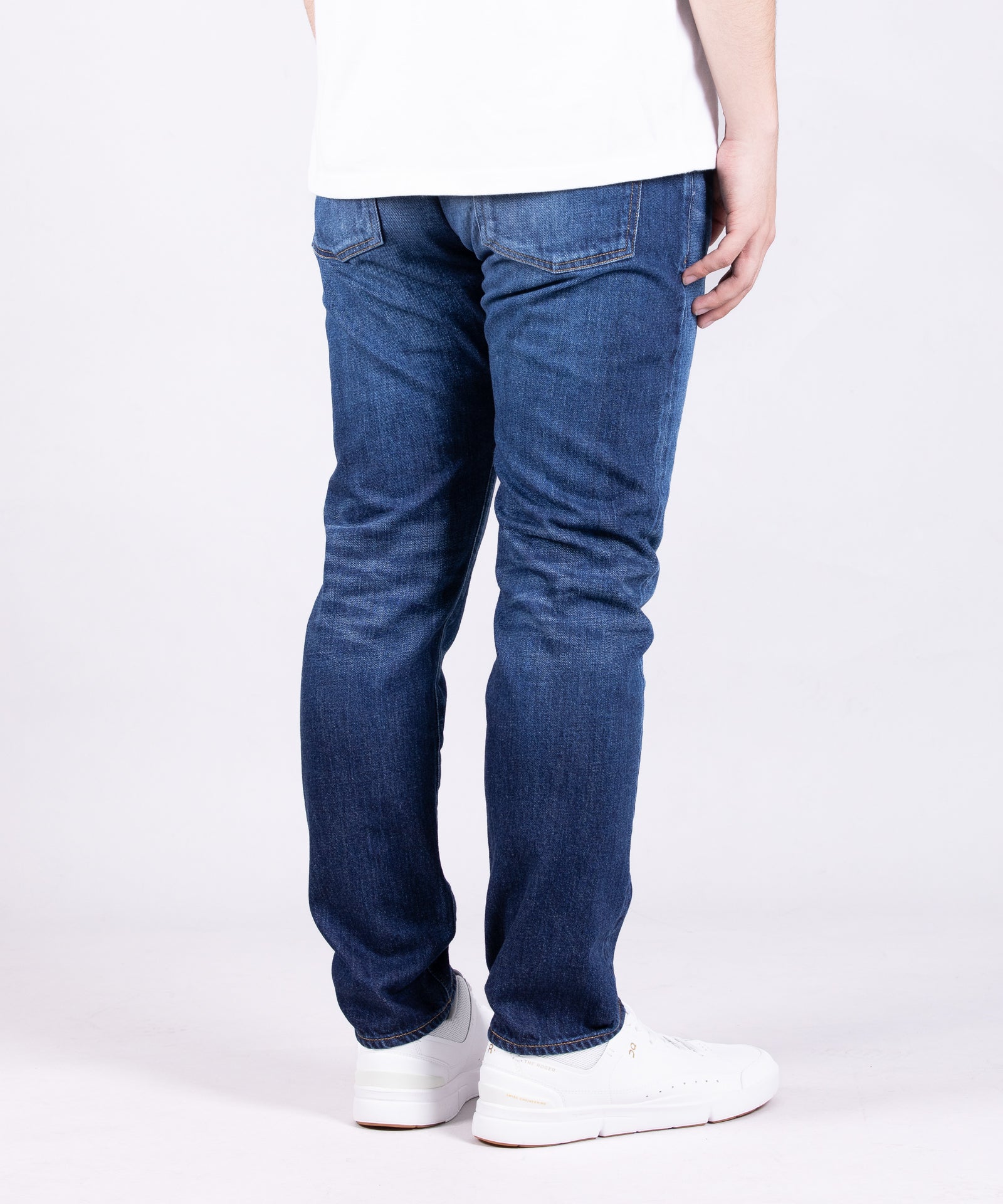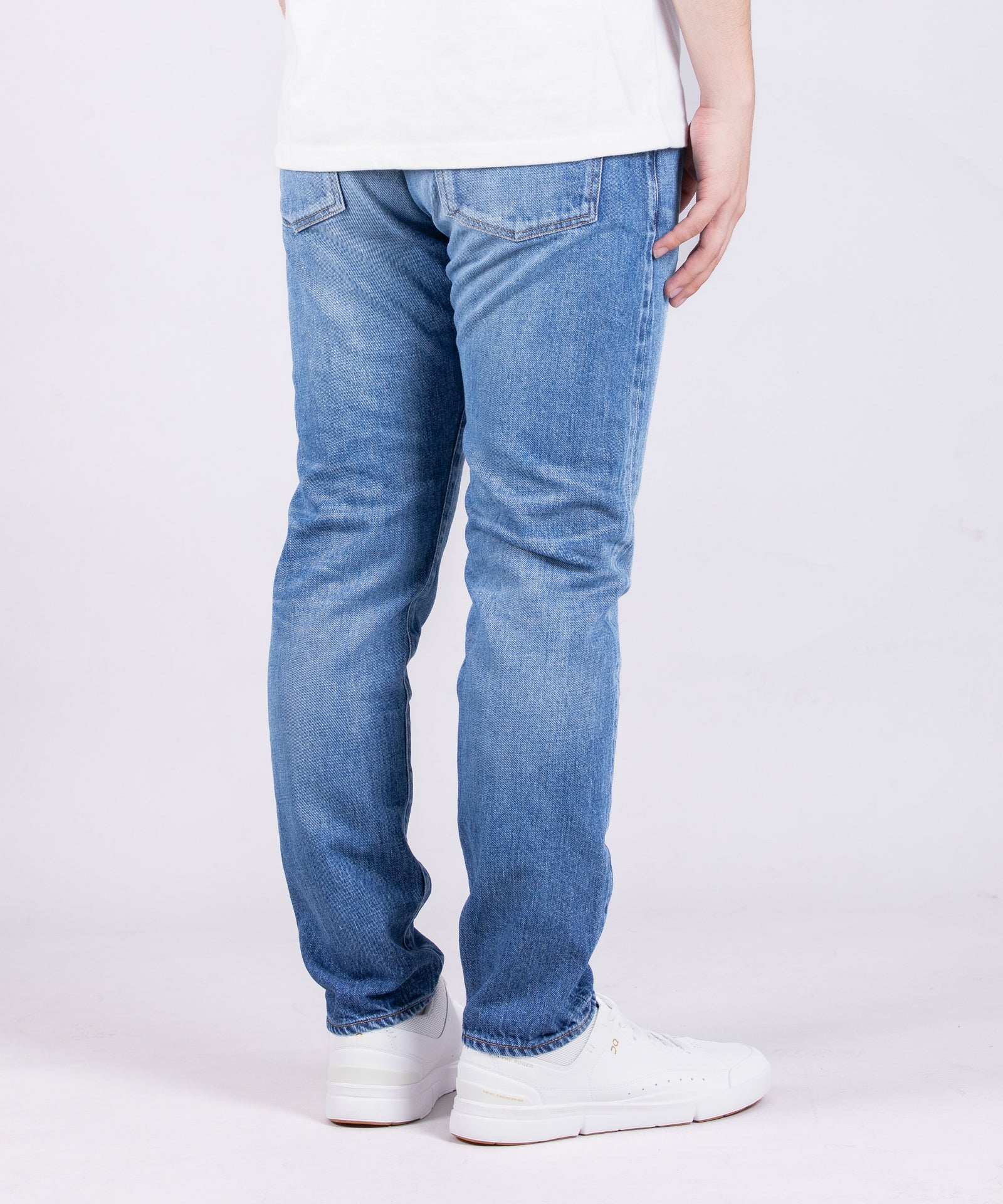 11oz ブルーセルヴィッチ スリム Aging Washは、脚のラインを美しく見せる洗練されたスリムシルエットが特徴です。太ももから裾へと緩やかにテーパードした設計により、スタイリッシュな印象を与えます。7×10番手の11ozデニム生地は、本格的な日本製デニム特有の色落ち感を保ちながらも、軽量で柔軟な着用感を実現。エイジングウォッシュ加工により、あらかじめ濃淡の鮮明なコントラストとアタリ・ヒゲが表現され、長年着用したかのような本格的なユーズド感と清涼感を両立させています。