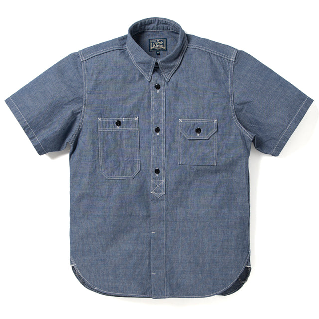 STUDIO D'ARTISAN D'artisan Chambray Short Sleeve Work Shirt [5333A-S]