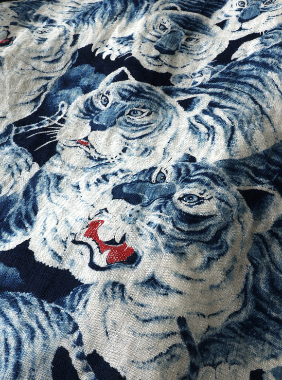 リネン100%の生地に手捺染により柄入れを行い、百虎の魅力をそのままに再現しました。