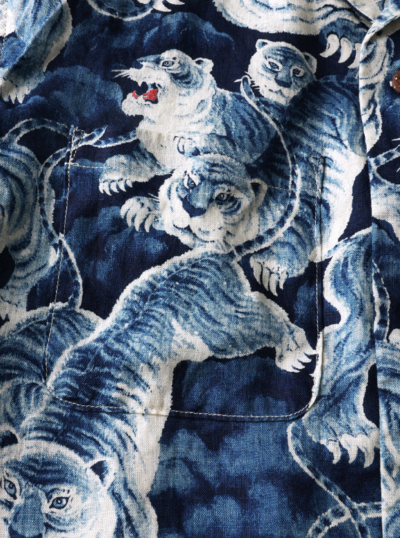 ベースとなったデザインは1950年代初期の名作ハワイアンシャツ「THE HUNDRED TIGERS」通称百虎。迫力のある無数の虎が配されたデザインは和柄の中でも最高傑作と評される人気の高いデザインです。