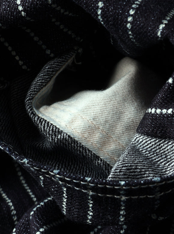 芯白があり、色落ちも楽しんで頂ける魅力はそのままに、10oz生地の凹凸と特濃色のインディゴの相性も良く、独特のムラ感、程よい不均一さが表現されています。