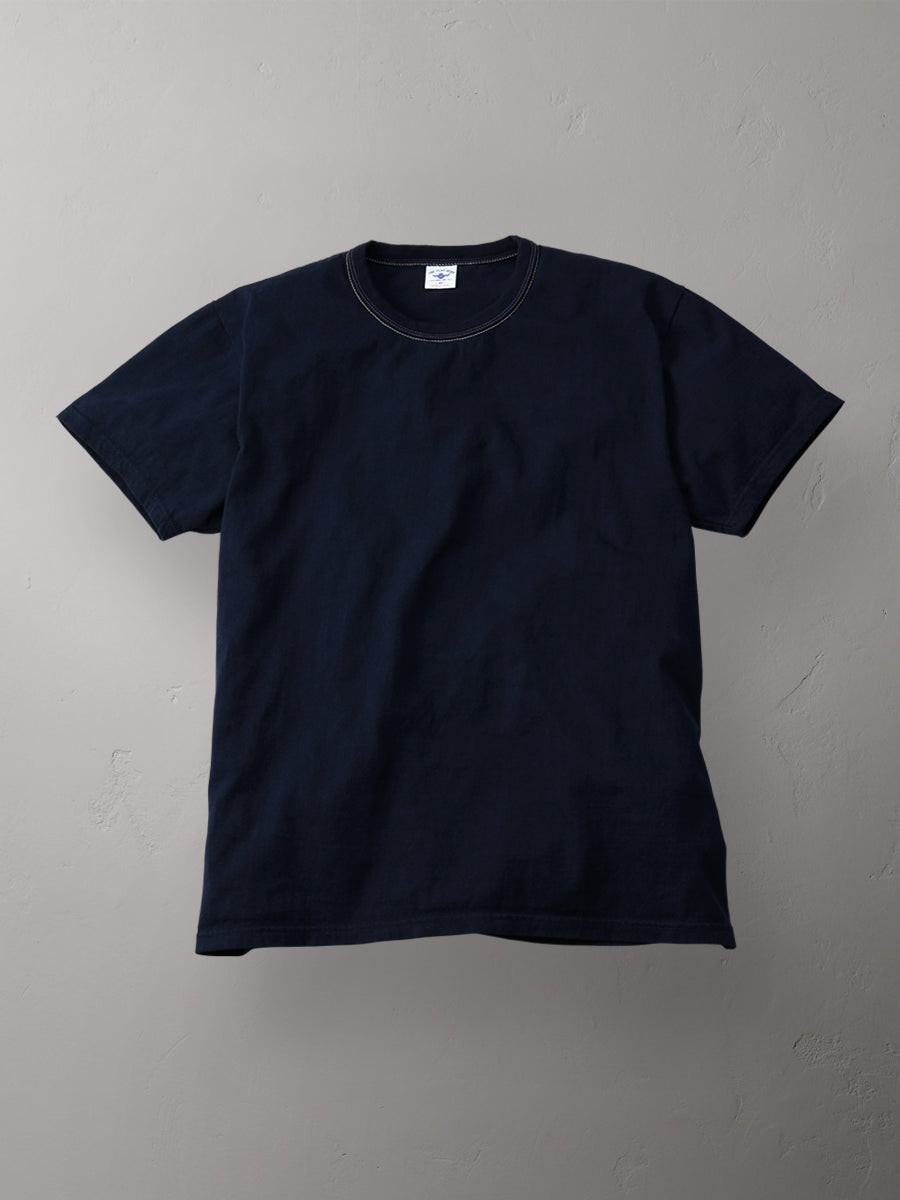 実在するヴィンテージTシャツの縫製から着想を得て、独自に改良を行った「3本針の1本外し®縫製」は伸びやすい首元に20番手の太いコットン糸を使用しています。