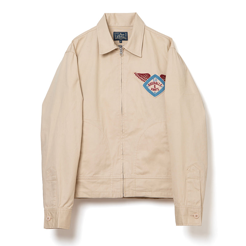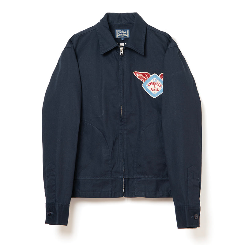 ヴィンテージのワークジャケットをデザインモチーフに レトロなレタリング刺繍やダブルフェルトワッペンを施しました。 コットン 100% なので気兼ねなく着れて、 一年を通して重宝する事、間違いなしのアイテムです。