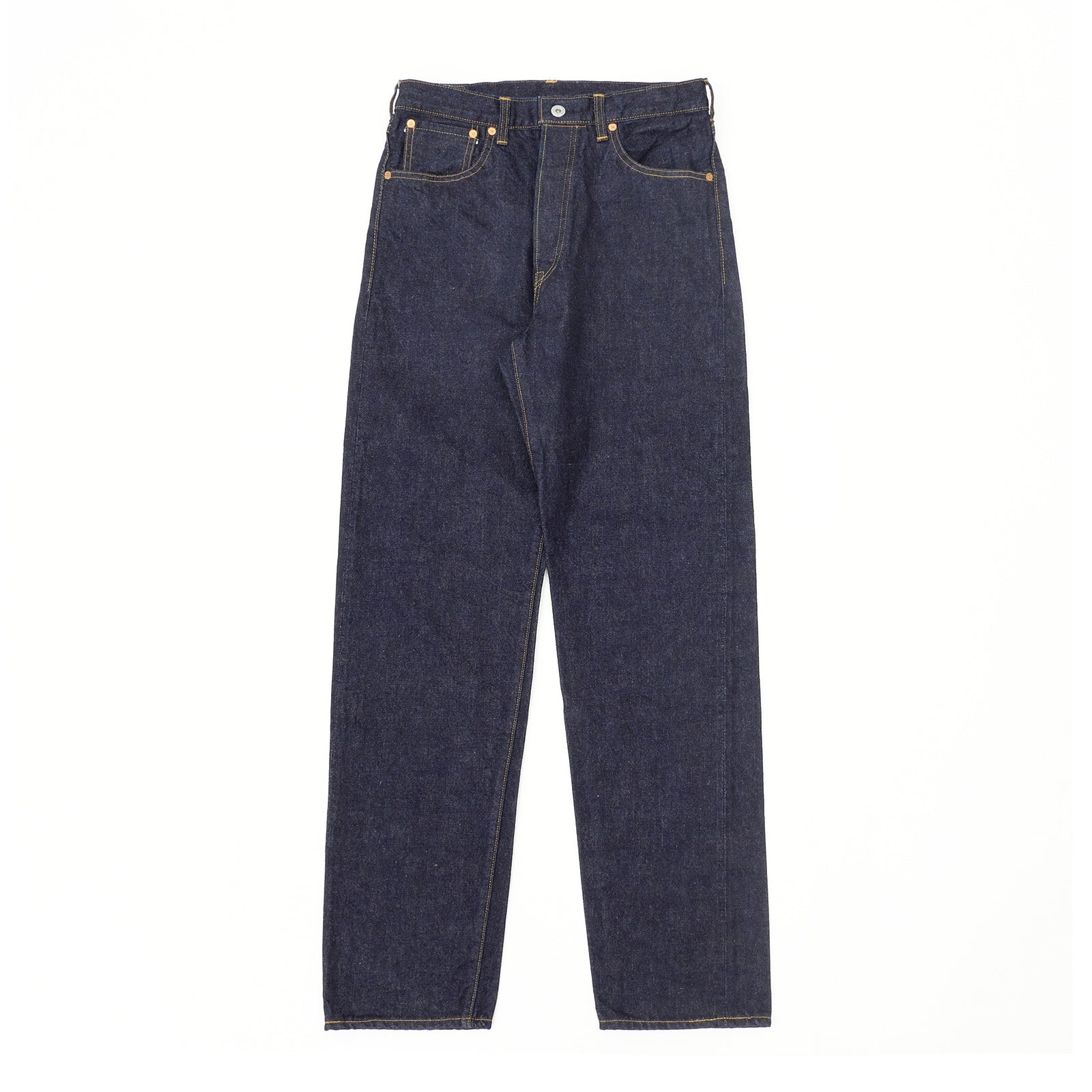 オリジナルの14.75ozのセルビッチデニムを使用。やや深めの股上にヒップから渡り幅にかけてはゆったり目ですが、裾にかけてナチュラルにテーパードラインを形成し癖の