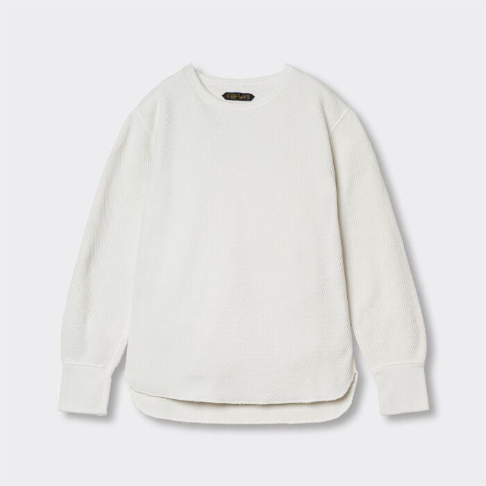 デザインはヴィンテージサーマルシャツをベースに、生地、縫製に拘った「ORGUEIL」らしい1着。襟は耐久性の高いバインダーネックを細幅仕様でクラシック感を演出。縫製はフラットシーマを使用しており、耐久性に優れております。また、フラットシーマでの縫製は縫い代が出ないため、肌へのストレスも軽減されます。シンプルながらも細部まで拘りが詰め込まれています。