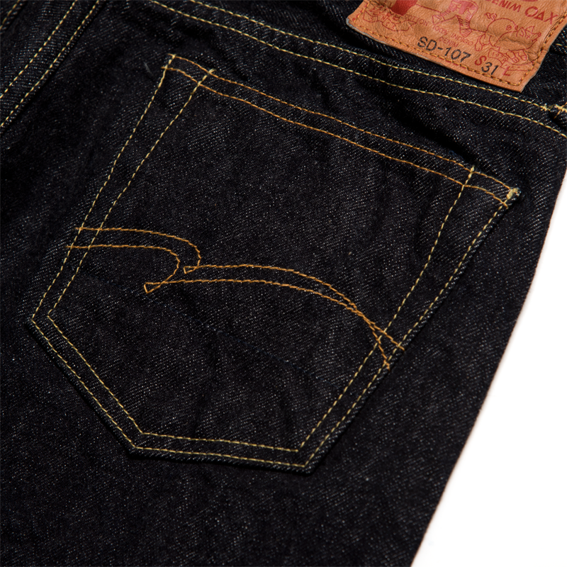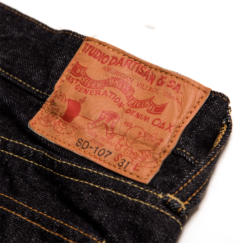 長い歴史の中で培ってきたヴィンテージの仕様をふんだんに盛り込みながら、 現代的なスーパータイトシルエットに再構築した温故知新の新定番「SD-107」。 青耳が目印の旧式織機で織り上げた15オンスの生機デニムは勿論、 トップボタン脇のV字ステッチやオフセットされたセンターベルトループ、 隠しリベットなど、スタイリッシュなシルエットに盛り込まれたこだわりの仕様。 生粋のジーンズフリークは勿論、STUDIO D'ARTISANのジーンズ初心者の方にも 「最初の1本」として自信を持ってお勧めできるプロダクトです。