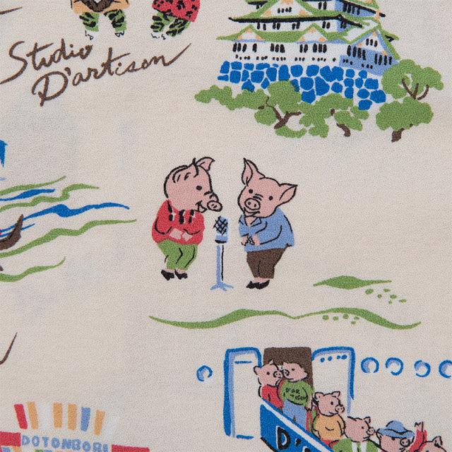 大阪の賑やかな街並みに観光を楽しむ豚さんたち、