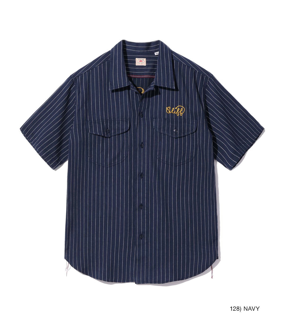 SUGAR CANE シュガーケイン コークストライプワークシャツ 刺繍 半袖 SC39305 ネイビー