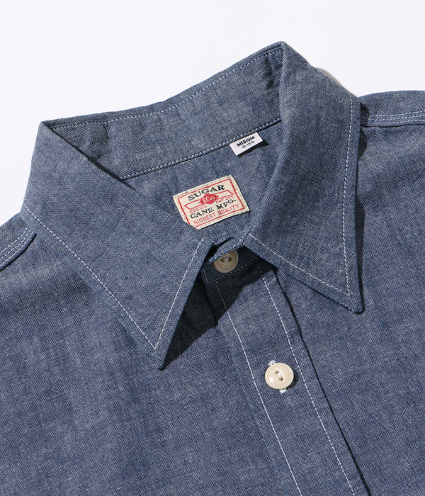 SUGAR CANE シュガーケイン ブルーシャンブレー ワークシャツ 無地 半袖シャツ SC37941