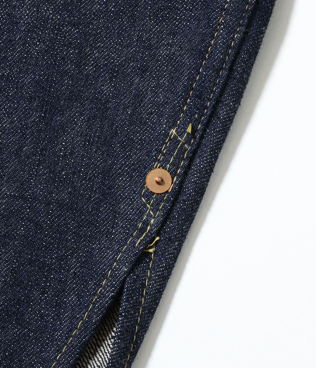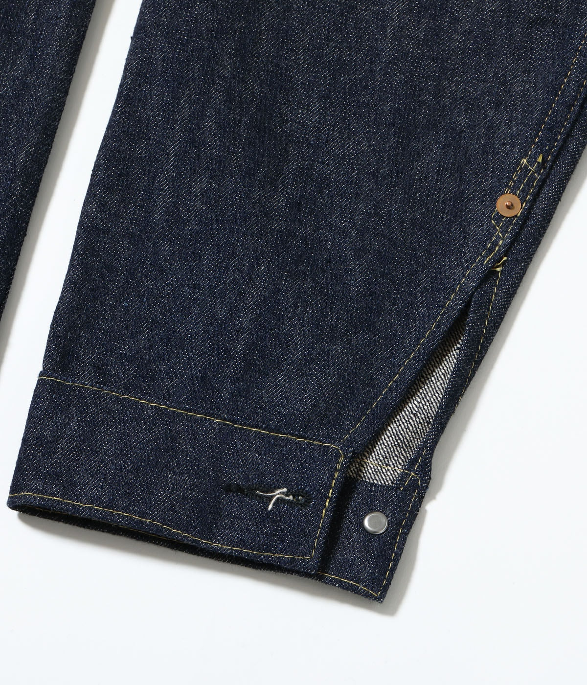 シュガーケーンの福富雄一が中心となり、デニムのスペシャリストを集結させて始動した新レーベル、SUGAR CANE Super “Denim” Collectibles。通称「SCSC」。今回の第二弾も世界有数のヴィンテージデニムコレクターである脇谷重輝氏を迎え、いまや入手不可能といえるほどの価値を持ったデッドストック&ゴールデンサイズのスーパーヴィンテージをもとに、その貴重な個体が持つ「個性」を完全再現する。1stコレクションに続き、2ndコレクションでもヴィンテージ市場で最も注目されている「大戦モデル」のスーパーヴィンテージ3点を公開。水通しすらしていないデッドストック、着用の痕は見られるがほぼ褪色していないミントコンディションの極めて希少なヴィンテージをもとに、糊が残った状態で酸化したインディゴの色味、経糸・緯糸に使われている綿の性質や糸の形状などを詳細に分析し、ヴィンテージと見紛うような仕上がり。パーツ類は、デッドストックの状態で経年変化した風合いを目指して制作。安全性を考慮して避けてきた2本針の鉄製バックルも本企画では採用している。縫製についても糸番手やミシンピッチは当然のこと、幅が均一ではない大戦期に見られる歪んだステッチワークを現代に蘇らせた。
