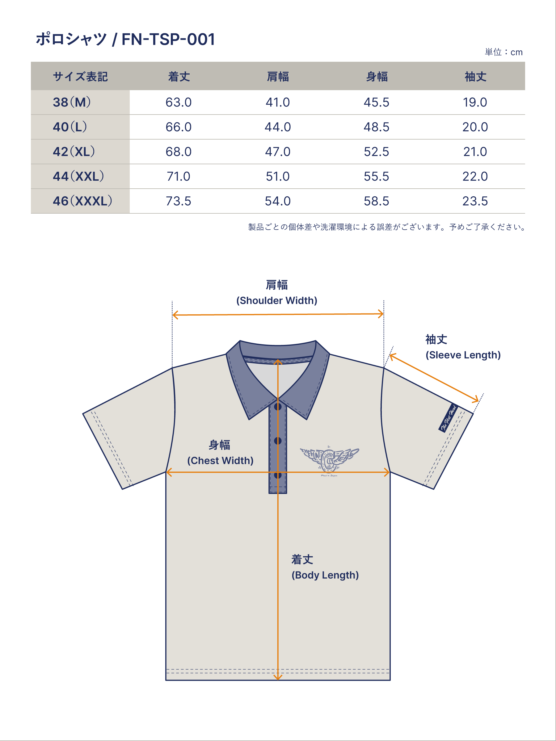 ・サイズ:38(M) / 40(L) / 42(XL) / 44(XXL) / 46(XXXL)