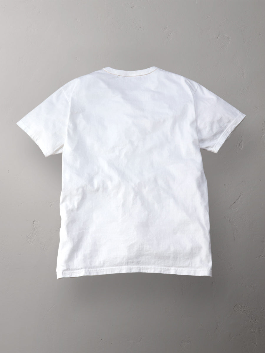 実在するヴィンテージTシャツの縫製から着想を得て、独自に改良を行った「3本針の1本外し縫製」は伸びやすい首元に20番手の太いコットン糸を使用しています。