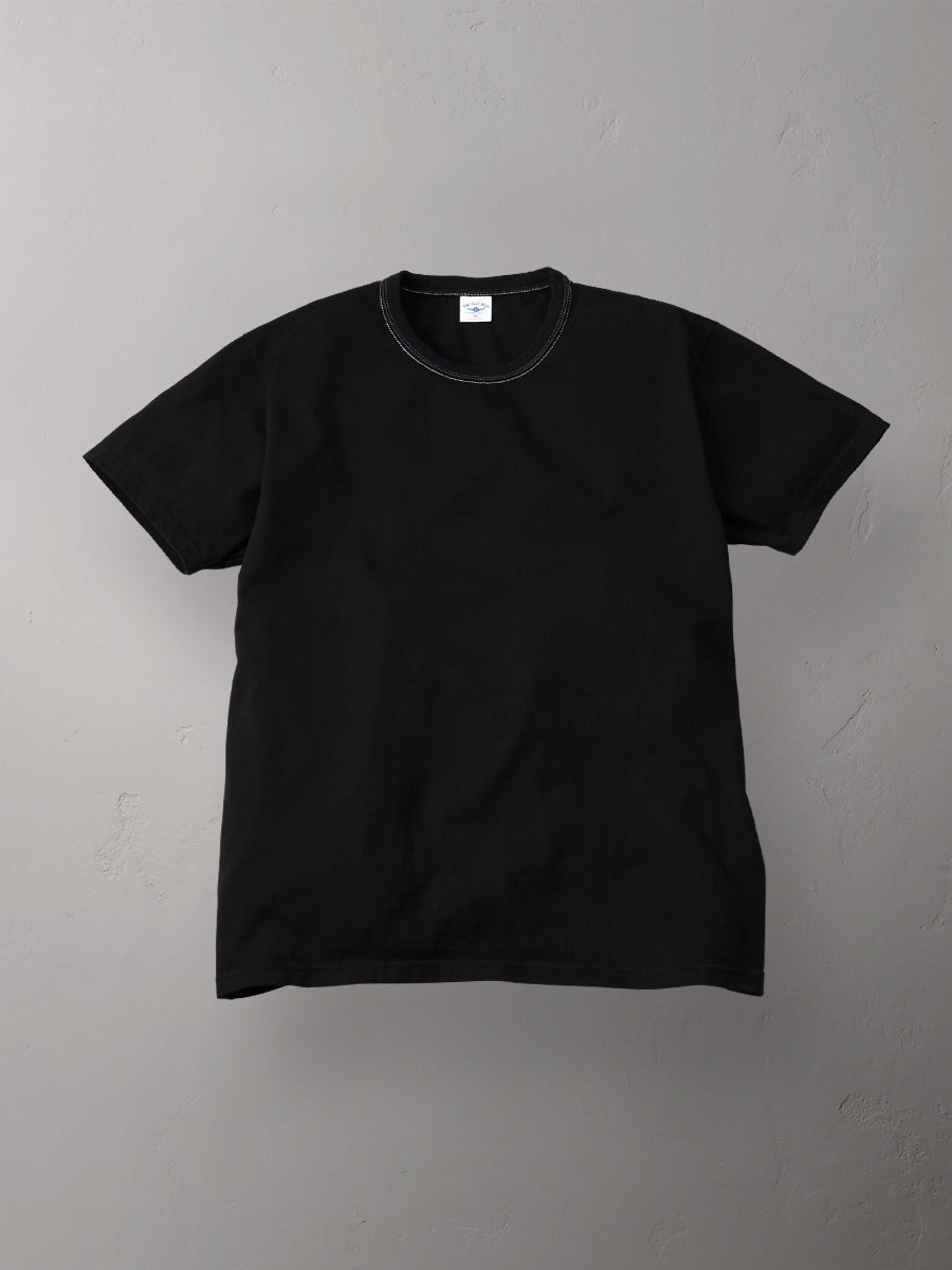 更にリブに2本、ボディに1本の合計3本のステッチで縫い上げることで、縫製技術とコットンの性質を利用し首元が伸びにくいTシャツを実現しました。
